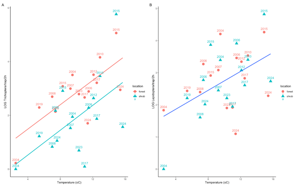 This analysis used RStudio to explore the relationship between species distribution and temperature, with data subset into forest and shrub environments. Statistical techniques, including correlation or regression, identified trends, while scatter plots visualized the results with color coding for clarity.